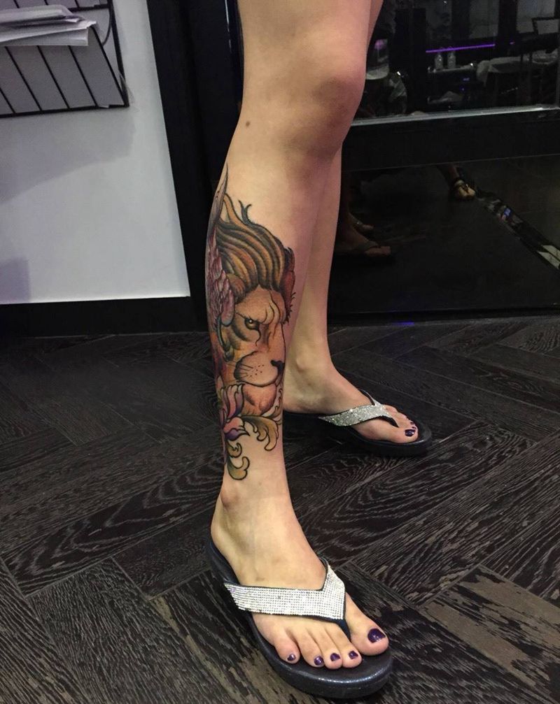 当前位置: 首页 >浙江省杭州市纹身店-蜉蝣刺青工作室纹身图案>狮子遮盖纹身图片_腿部脚部欧美school动物原创纹身图案