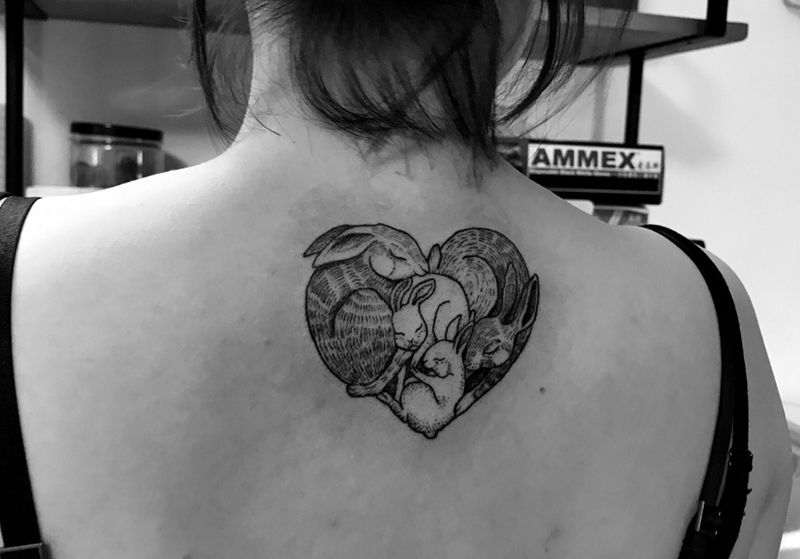当前位置: 首页 >浙江省杭州市纹身店-蜉蝣刺青工作室纹身图案>兔子纹身图片_成品背部欧美清新动物纹身图案