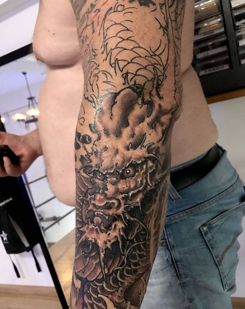 当前位置: 首页 >浙江省杭州市纹身店-蜉蝣刺青工作室纹身图案>龙花臂纹身图片_成品手臂传统动物宗教纹身图案