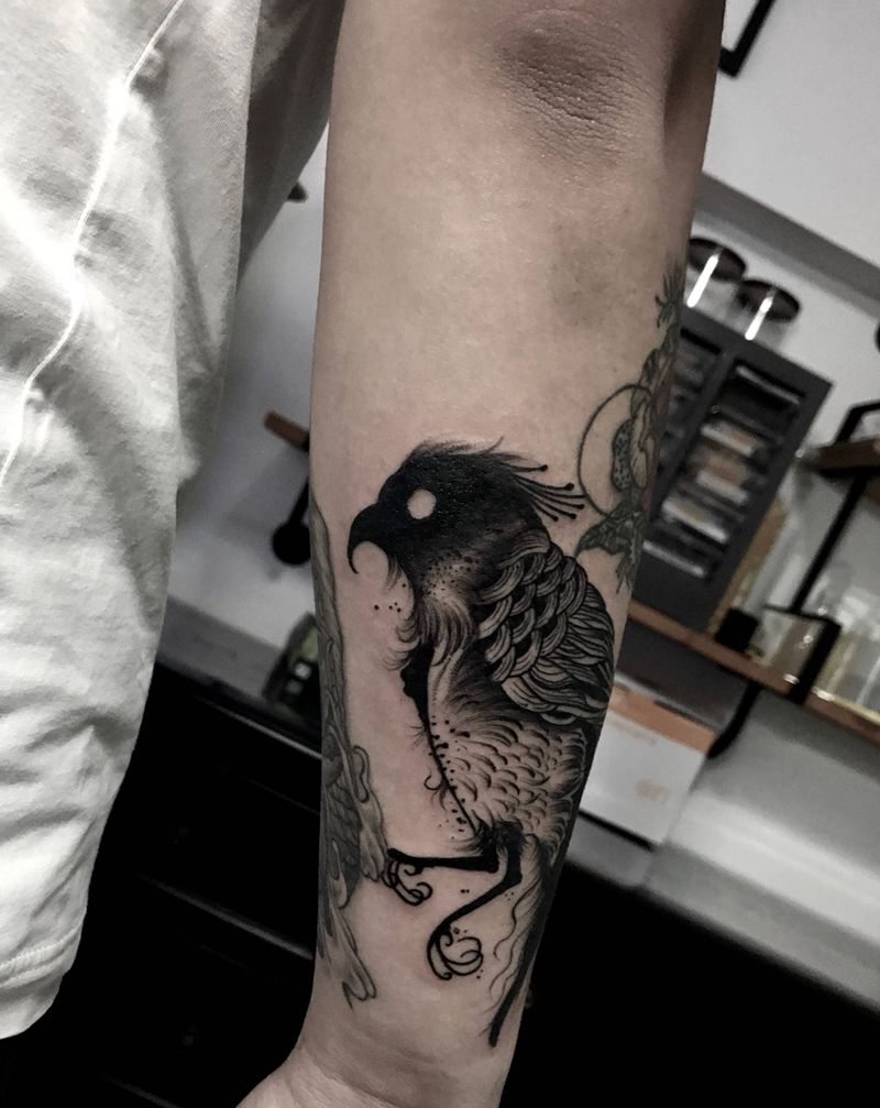 当前位置: 首页 >浙江省杭州市纹身店-蜉蝣刺青工作室纹身图案>暗黑鸟类纹身图片_成品手臂手部欧美鬼神动物宗教暗黑系纹身图案