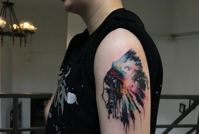 当前位置: 首页 >浙江省杭州市纹身店-蜉蝣刺青工作室纹身图案>水彩酋长纹身图片_成品手部手臂欧美原创清新人物纹身图案