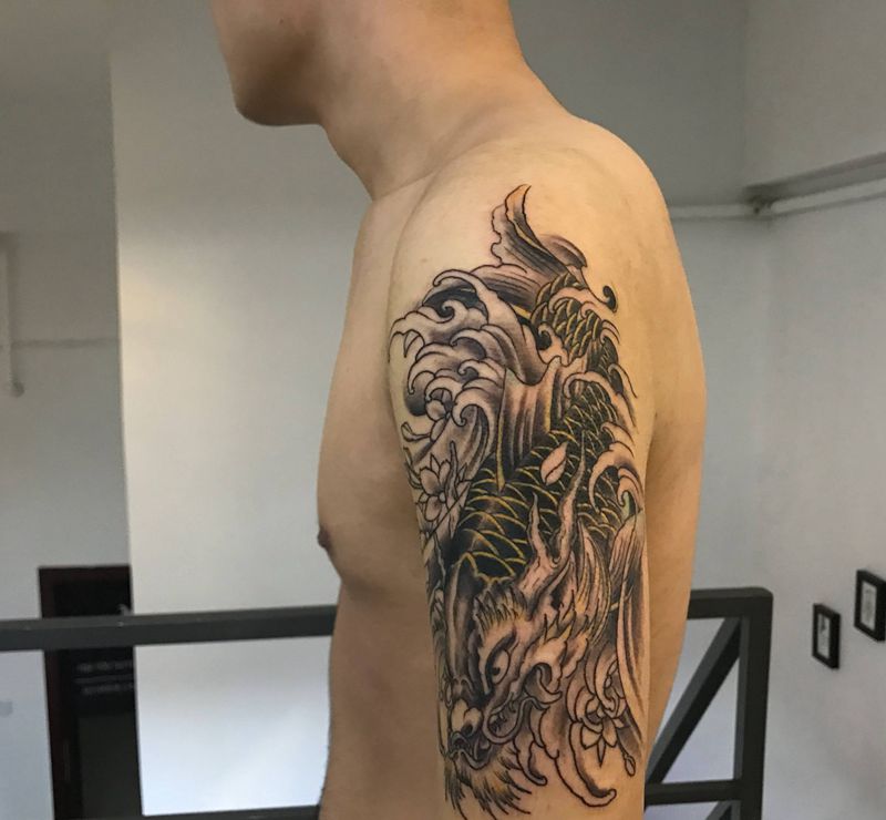 当前位置: 首页 >浙江省杭州市纹身店-蜉蝣刺青工作室纹身图案>社会鱼纹身图片_成品手部手臂传统动物纹身图案