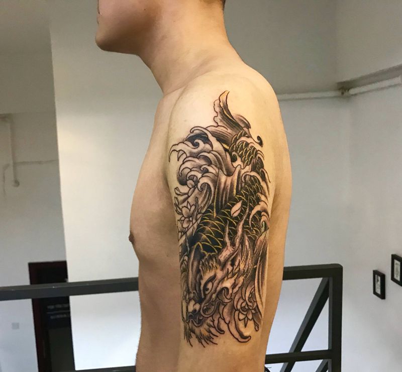 当前位置: 首页 >浙江省杭州市纹身店-蜉蝣刺青工作室纹身图案>社会鱼纹身图片_成品手部手臂传统动物纹身图案