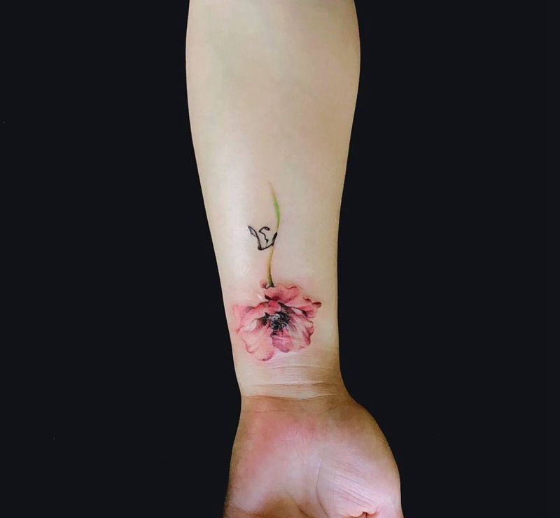 水彩罂粟纹身图片_成品手部手臂欧美原创遮盖纹身图案