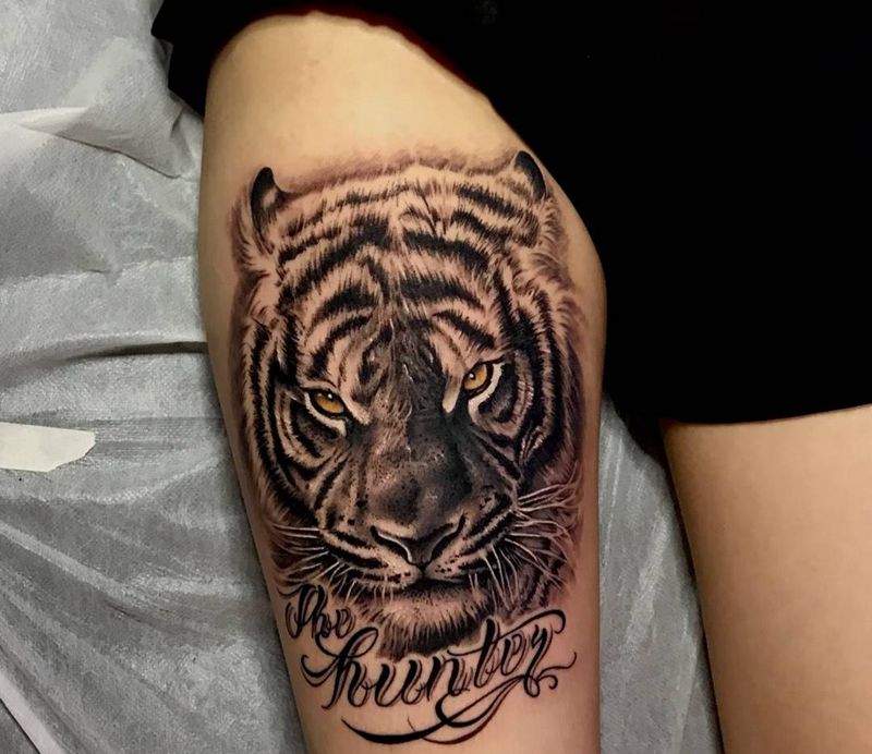 当前位置: 首页 >浙江省杭州市纹身店-蜉蝣刺青工作室纹身图案>写实老虎-Lisa作品纹身图片_成品腿部欧美写实动物原创纹身图案