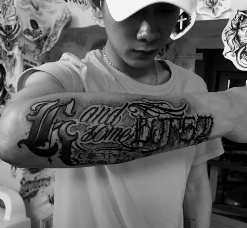 当前位置: 首页 >浙江省杭州市纹身店-蜉蝣刺青工作室纹身图案>花体字纹身图片_成品手臂欧美几何字符原创花体字纹身图案