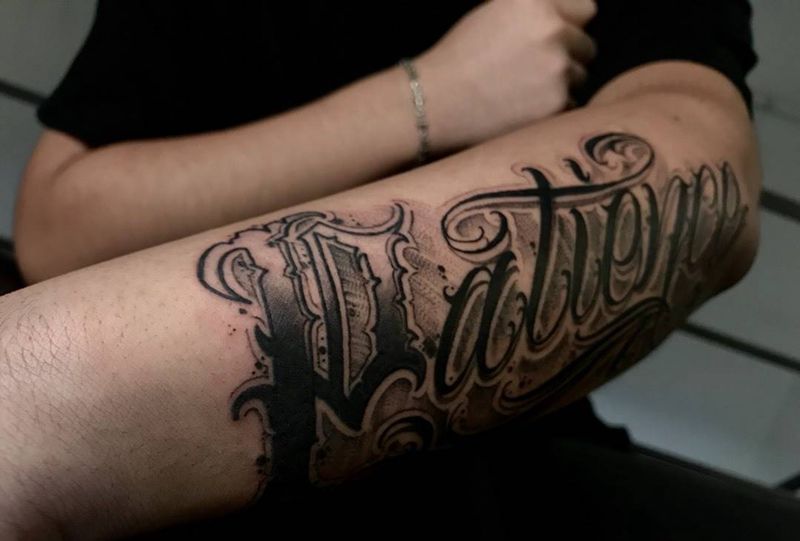 当前位置: 首页 >浙江省杭州市纹身店-蜉蝣刺青工作室纹身图案>欧美花体字纹身图片_成品手臂欧美字符原创花体字纹身图案