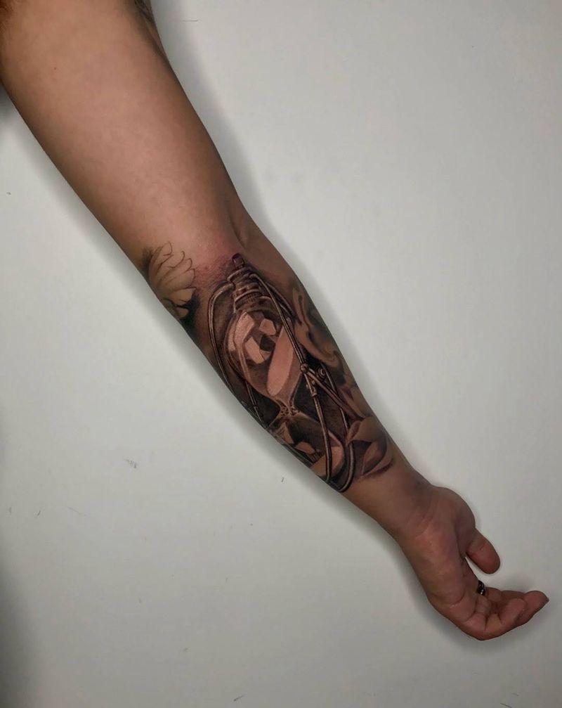 当前位置: 首页 >浙江省杭州市纹身店-蜉蝣刺青工作室纹身图案>沙漏纹身图片_成品手臂欧美写实原创静物宗教纹身图案