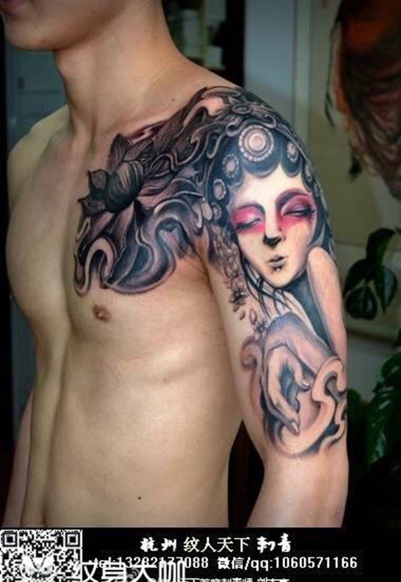当前位置: 首页 >浙江省杭州市纹身店-纹人天下刺青会所纹身图案>花旦半甲纹身图片