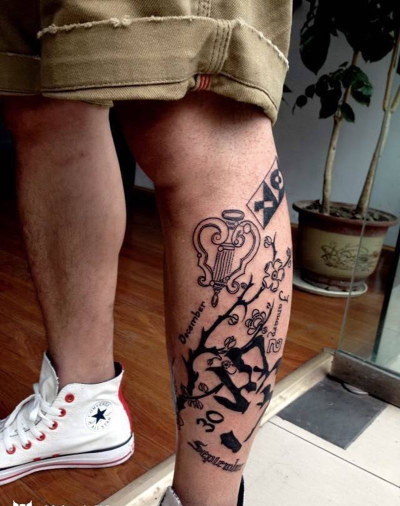 • T网红王老大花腿龙纹身图片_腿部新传统纹身图案