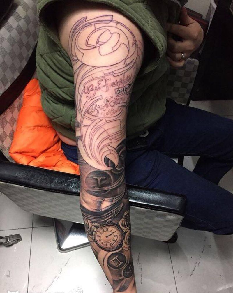当前位置: 首页 >浙江省杭州市纹身店-纹人天下刺青会所纹身图案>机械肖像大花臂纹身图片