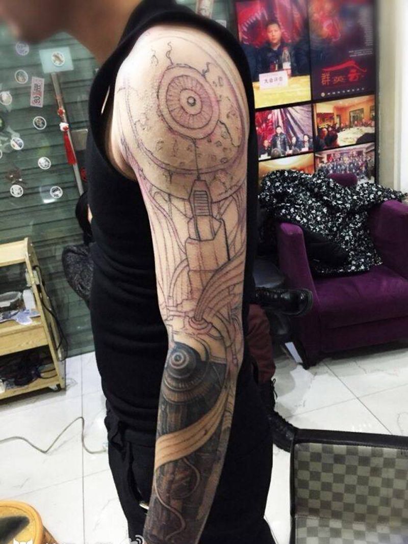 当前位置: 首页 >浙江省杭州市纹身店-纹人天下刺青会所纹身图案>机械花臂纹身图片