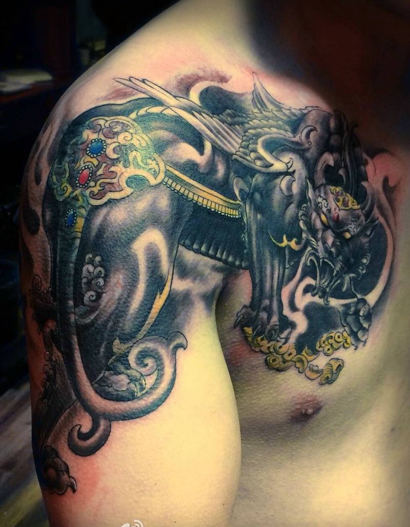 当前位置: 首页 >浙江省杭州市纹身店-纹人天下刺青会所纹身图案>招财半甲貔貅遮盖纹身图片