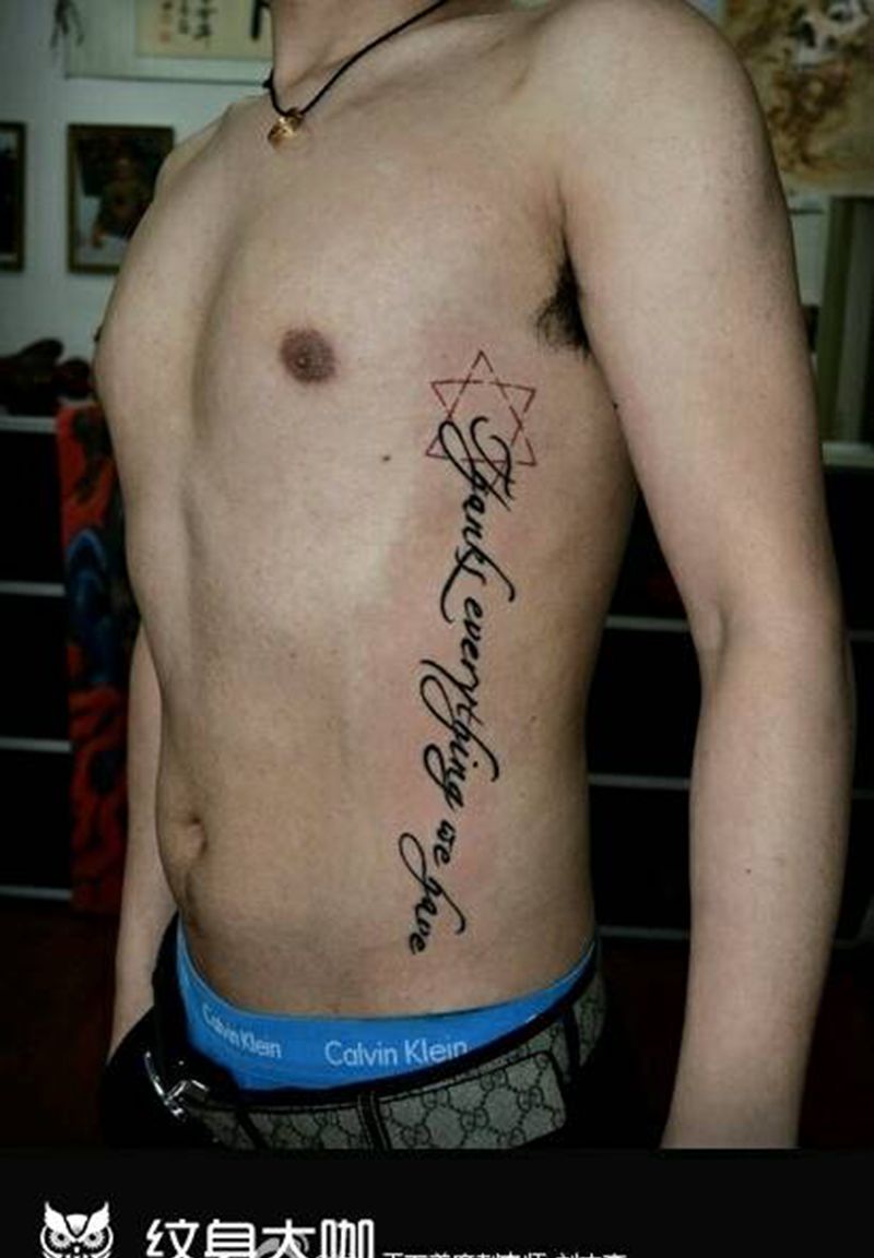 • T关于私处得爱!纹身图片_成品腹部清新字符图腾纹身图案