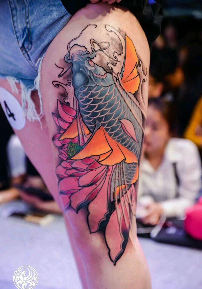 • T网红王老大花腿龙纹身图片_腿部新传统纹身图案