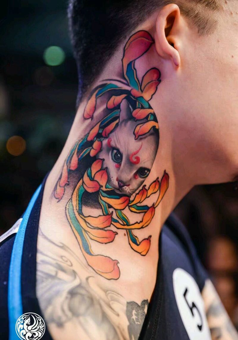 • T招财猫纹身图片