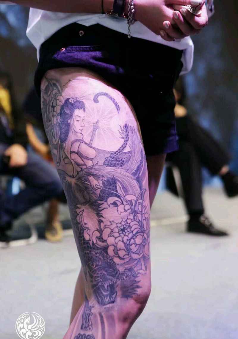 • T网红王老大花腿龙纹身图片_腿部新传统纹身图案