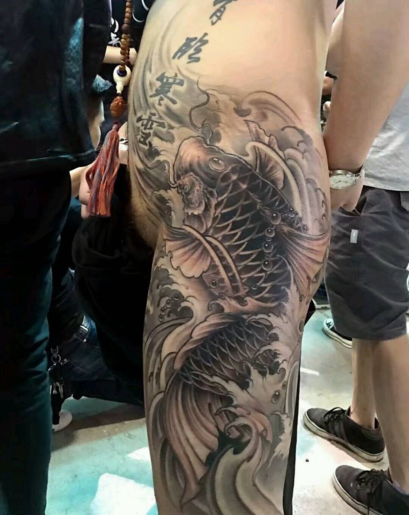 • T网红王老大花腿龙纹身图片_腿部新传统纹身图案