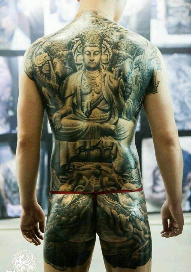 • 黑灰满背纹身图案