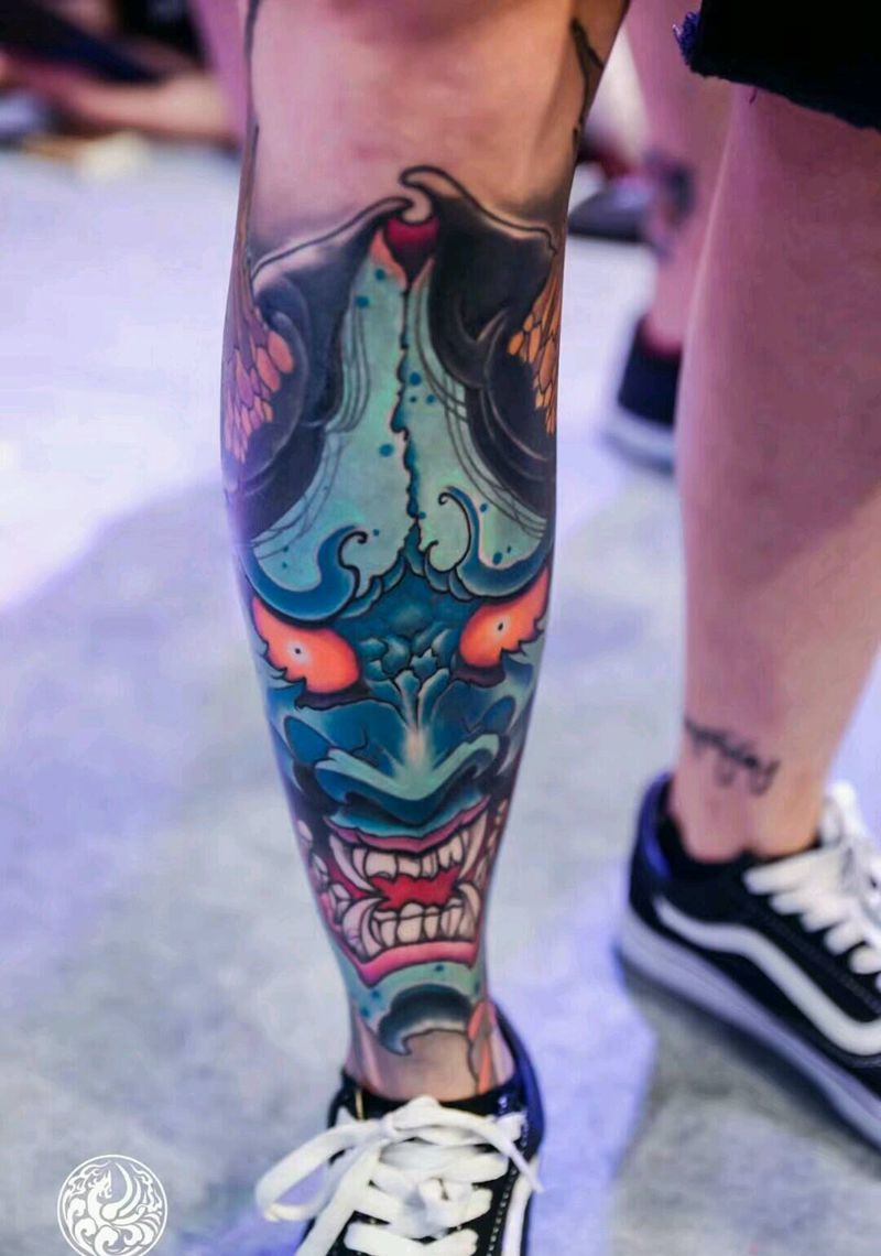 • T网红王老大花腿龙纹身图片_腿部新传统纹身图案