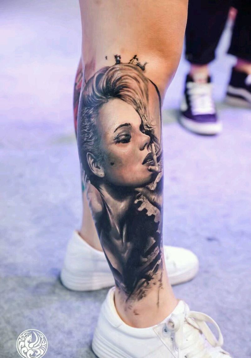 • T网红王老大花腿龙纹身图片_腿部新传统纹身图案