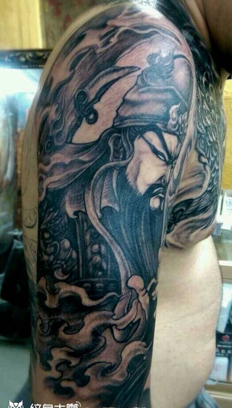 黑灰满背纹身图案