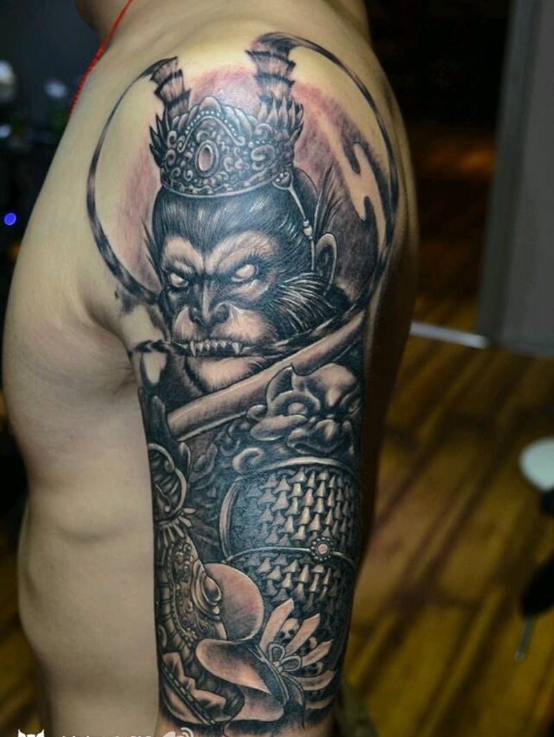 黑灰满背纹身图案