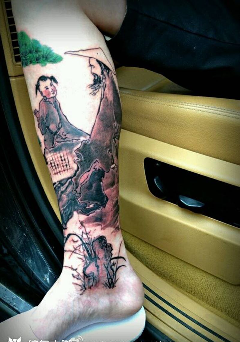 • T网红王老大花腿龙纹身图片_腿部新传统纹身图案