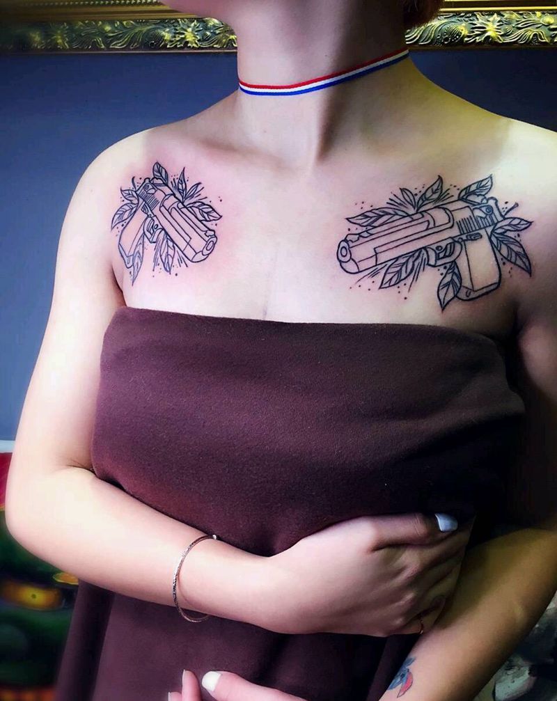 美女纹身 枪花纹身纹身图片