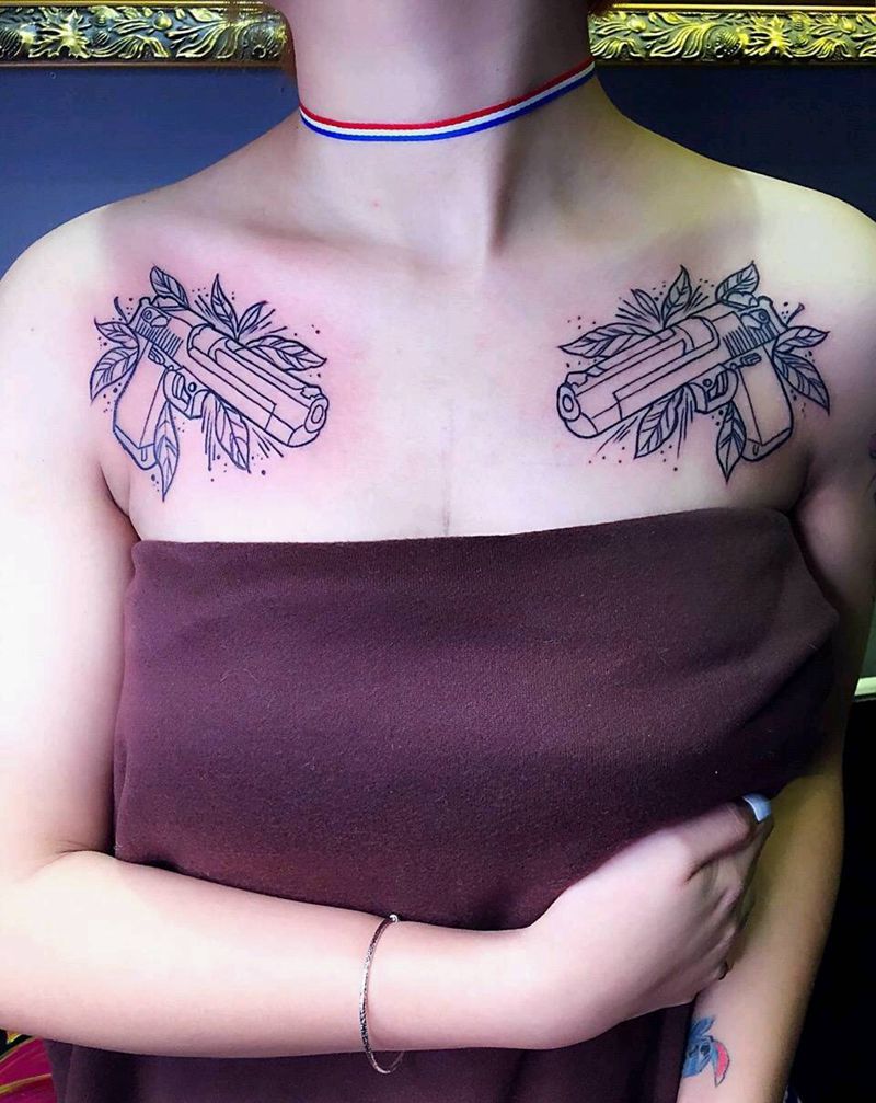 当前位置: 首页 >浙江省杭州市纹身店-纹人天下刺青会所纹身图案>美女纹身 枪花纹身纹身图片