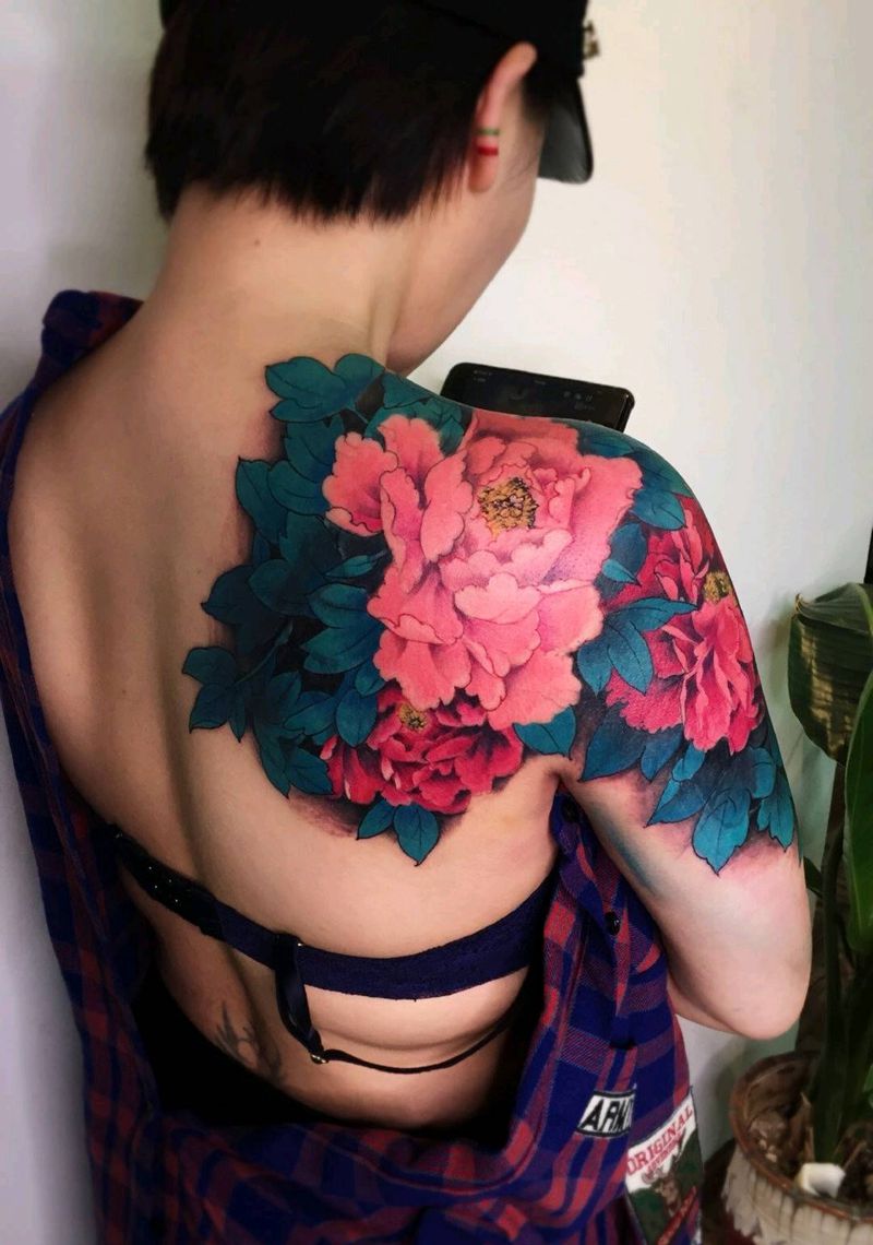 • 女性大花胸纹身_43张霸气漂亮的女性大花胸纹身图案作品