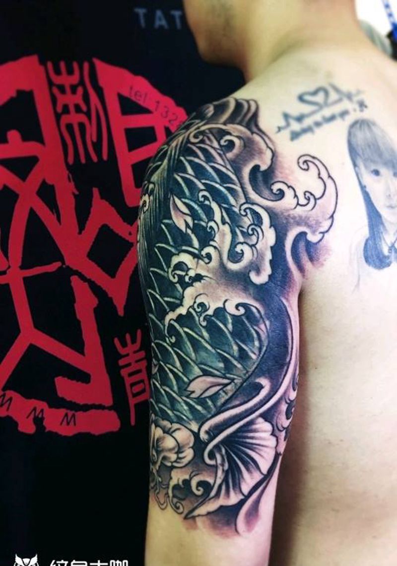 当前位置: 首页 >浙江省杭州市纹身店-纹人天下刺青会所纹身图案>鲤鱼遮盖纹身纹身图片_手臂新传统纹身图案