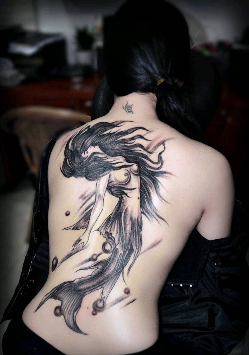 美人鱼纹身纹身图片_背部老传统满背纹身图案