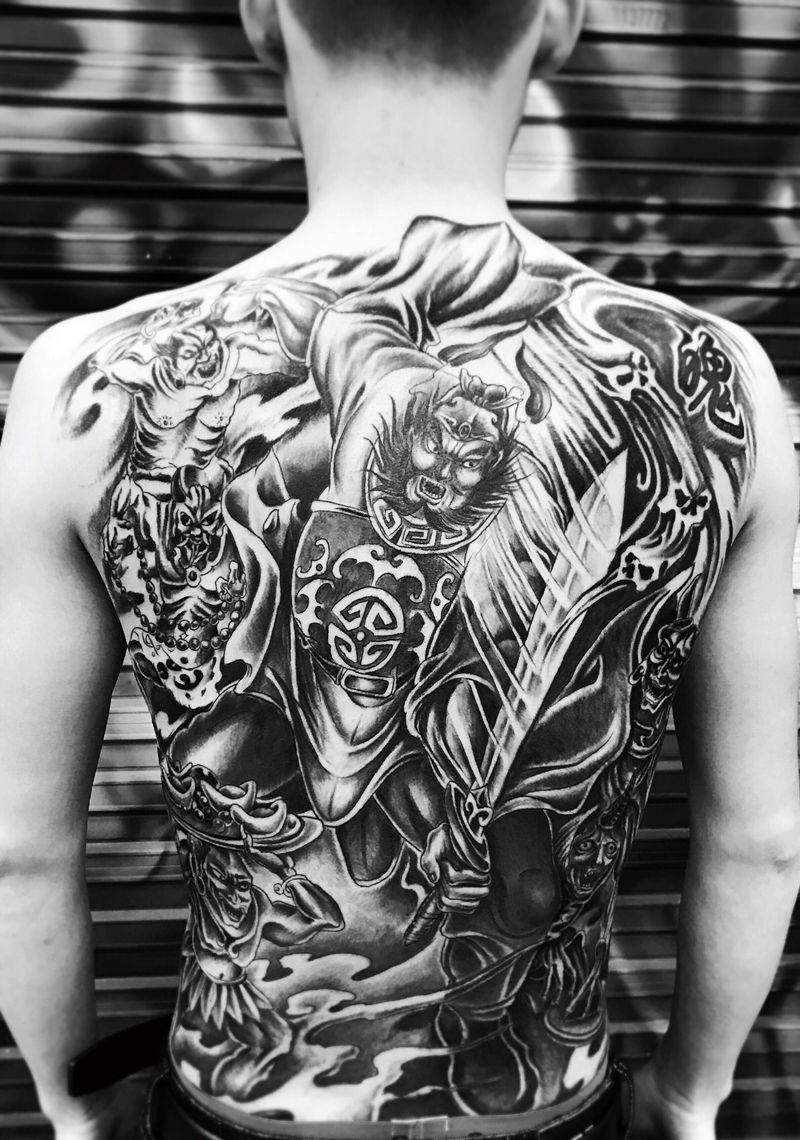 黑灰满背纹身图案