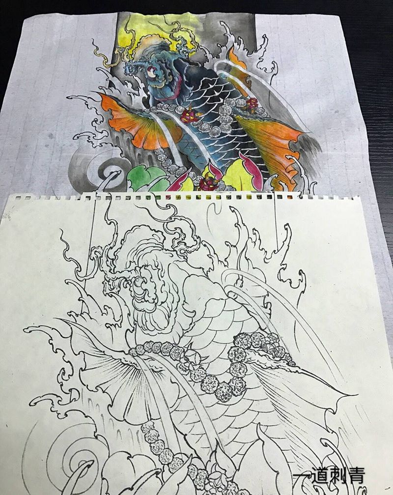 当前位置: 首页 >浙江省杭州市纹身店-今刺古青纹身图案>鲤鱼荷花纹身图片