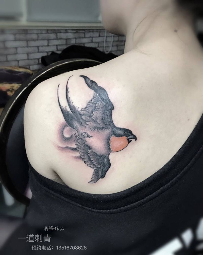 当前位置: 首页 >浙江省杭州市纹身店-今刺古青纹身图案>小燕子(遮盖字母)纹身图片