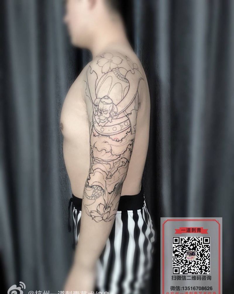 当前位置: 首页 >浙江省杭州市纹身店-今刺古青纹身图案>鬼武士线条!纹身图片_人物鬼神传统肖像手臂纹身图案
