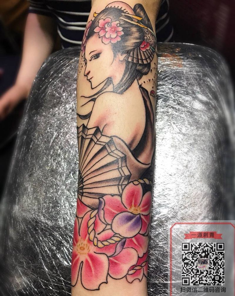 皮肤白就是感觉好!纹身图片_艺妓人物鬼神传统肖像手臂成品纹身图案