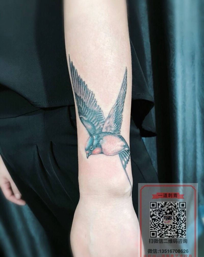 当前位置: 首页 >浙江省杭州市纹身店-今刺古青纹身图案>小燕子纹身图片_动物写实手臂纹身图案