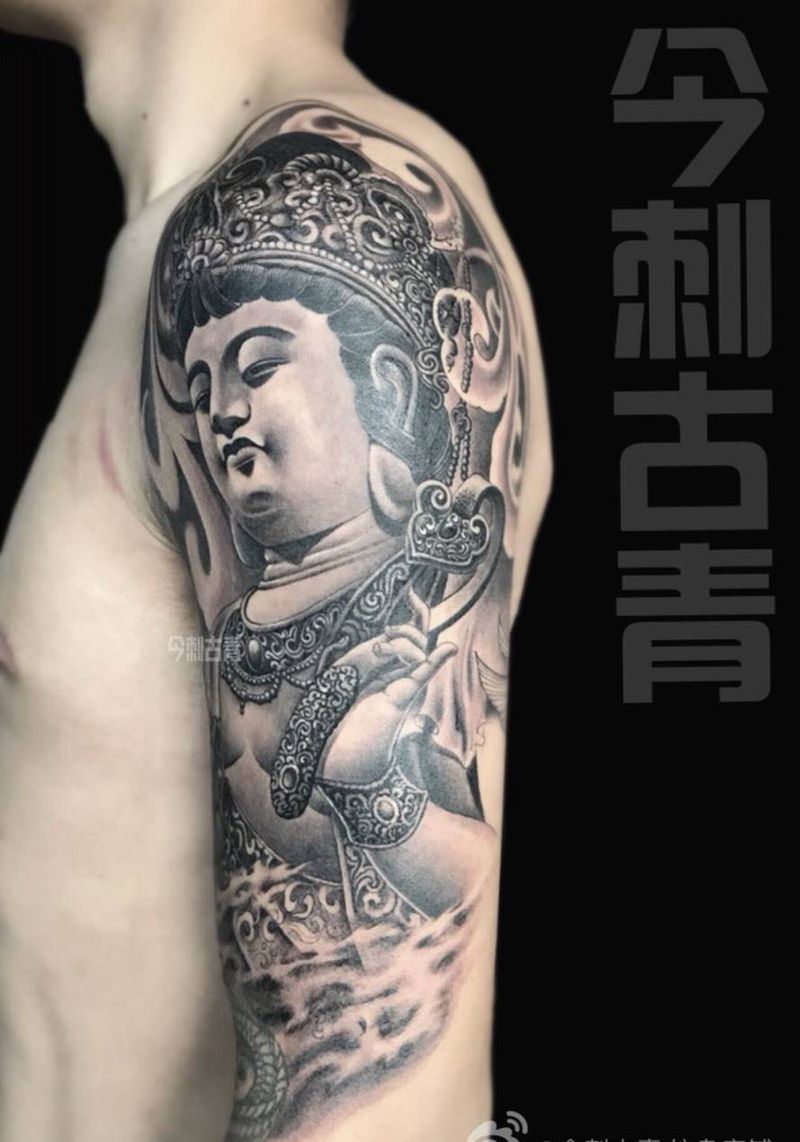 当前位置: 首页 >浙江省杭州市纹身店-今刺古青纹身图案>西游篇纹身图片_传统肖像国画鬼神人物手臂纹身图案