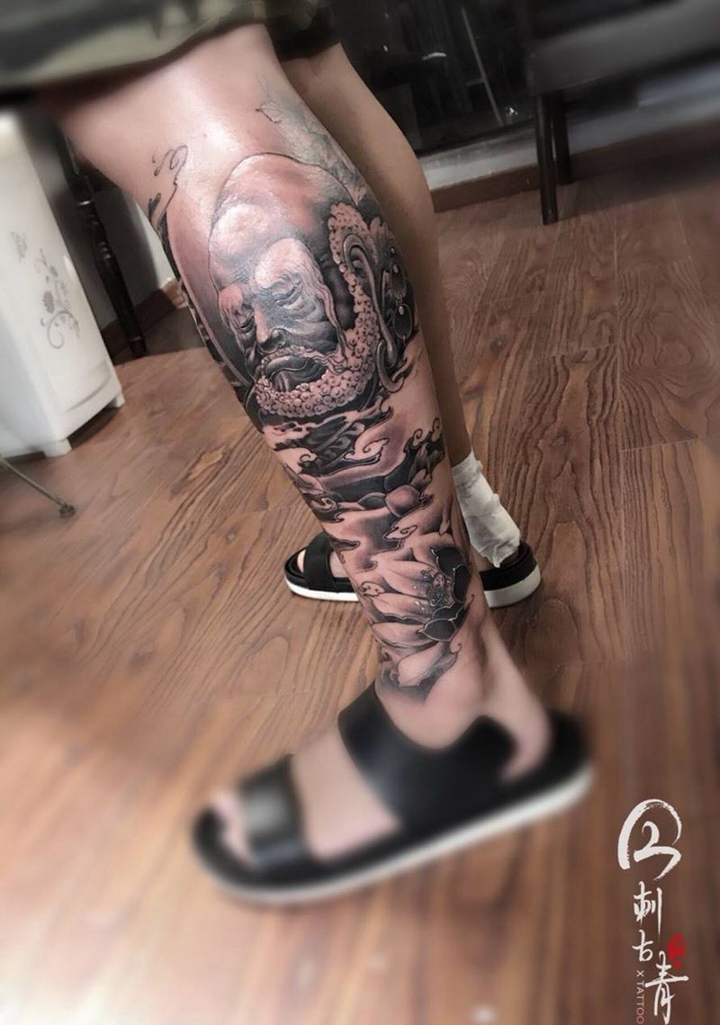 达摩老祖纹身图片_腿部脚部新传统纹身图案