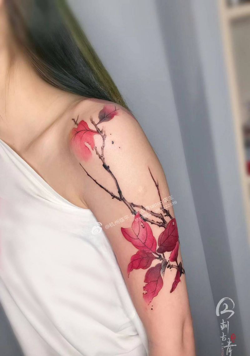 国风纹身图片_手臂水彩水墨工笔画纹身图案