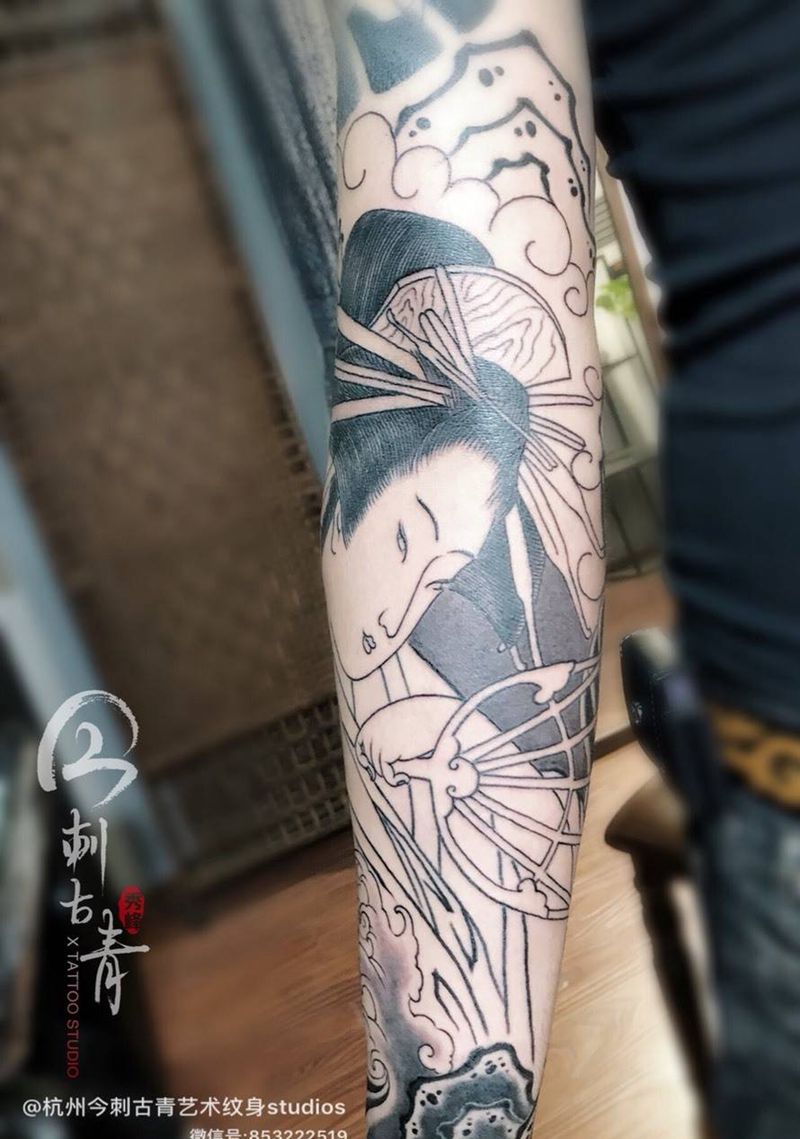 当前位置: 首页 >浙江省杭州市纹身店-今刺古青纹身图案>传统艺妓纹身图片_传统美女艺妓原创手臂纹身图案