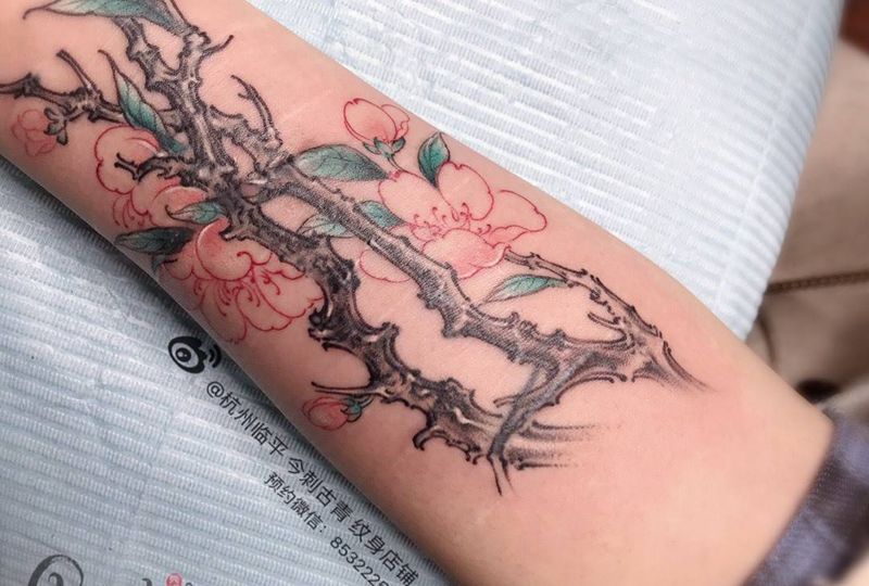 遮盖纹身图片_手部手臂新传统工笔花纹身图案