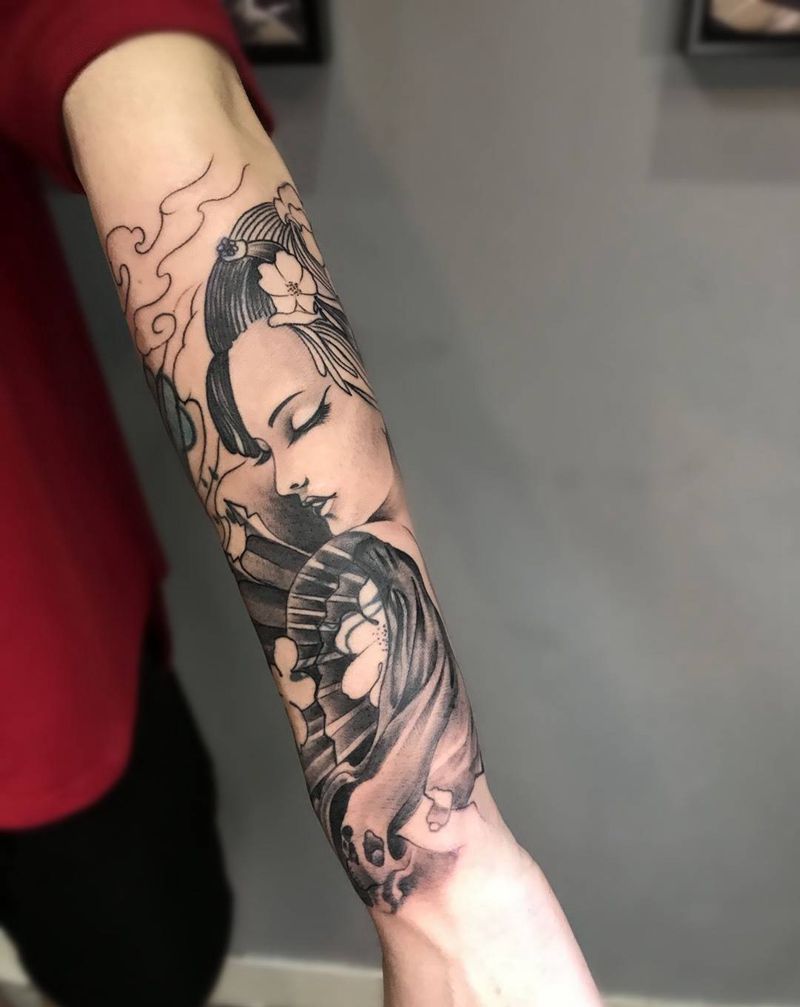 遮盖失败纹身#包小臂艺妓#纹身图片_手稿成品插画手部手臂传统肖像写实人物宗教纹身图案