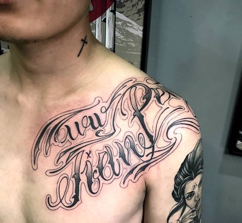 原创前胸花体字纹身图片_手稿成品颈部胸部肩部手臂欧美几何原创图腾纹身图案