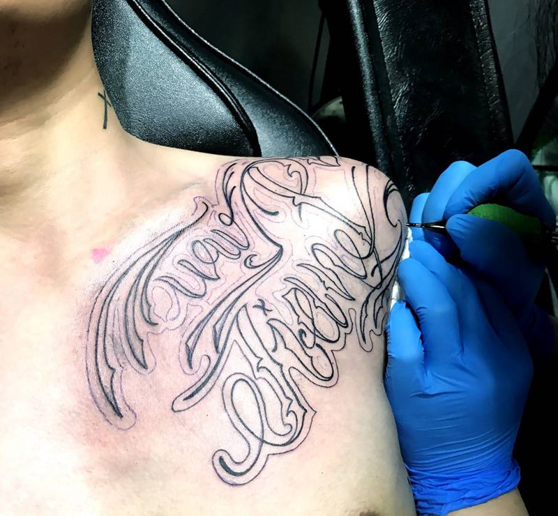 原创前胸花体字纹身图片_手稿成品颈部胸部肩部手臂欧美几何原创图腾纹身图案