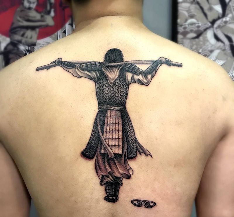 当前位置: 首页 >浙江省宁波市纹身店-宁波烙印纹身纹身图案>后背至尊宝纹身图片_成品插画肩部背部传统习俗写实人物宗教鬼神纹身图案
