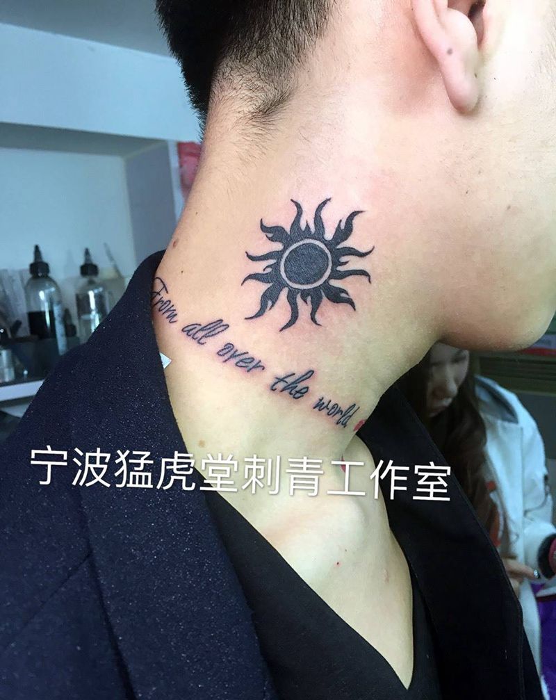 当前位置: 首页 >浙江省宁波市纹身店-宁波猛虎堂刺青工作室纹身图案>太阳图腾纹身图片_颈部成品图腾传统纹身图案
