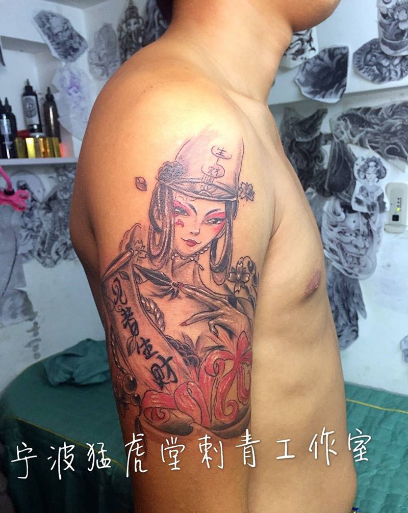 当前位置: 首页 >浙江省宁波市纹身店-宁波猛虎堂刺青工作室纹身图案>白无常纹身纹身图片_成品手稿胸部背部手臂传统鬼神人物纹身图案